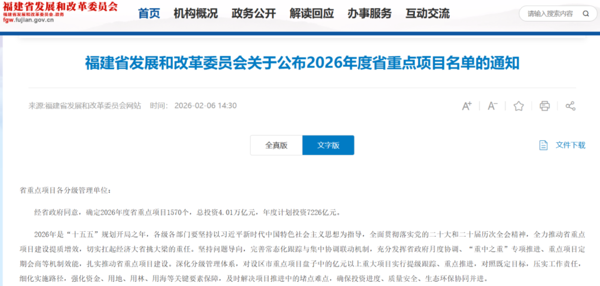 《通知》指出,2026年是“十五五”规划开局之年,各级各部门要坚持以习近平新时代中国特色社会主义思想为指导,全面贯彻落实党的二十大和二十届历次全会精神,全力推动省重点项目建设提质增效,切实扛起经济大省挑大梁的重任。坚持问题导向,完善常态化跟踪与集中协调联动机制,充分发挥省政府月度协调、“重中之重”专项推进、重点项目定期会商等机制效能,扎实推动省重点项目建设。深化分级管理体系,对设区市重点项目盘子中的亿元以上重大项目实行提级跟踪、重点推进,对照既定目标,压实工作责任,细化实施路径,强化资金、用地、用林、用海等关键要素保障,及时解决项目推进中的堵点难点,确保投资进度、质量安全、生态环保协同并进。